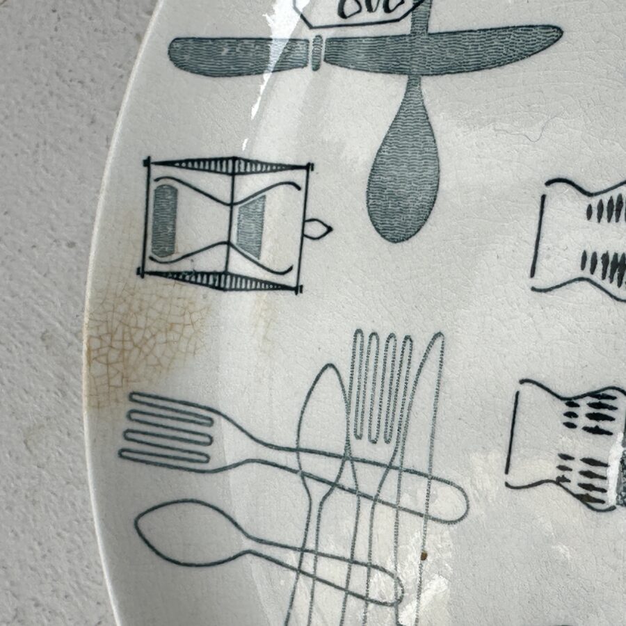 Condition: No cracks or chips but this is heavily crazed, there is some discolouration where staining has got under the glaze – see photos.