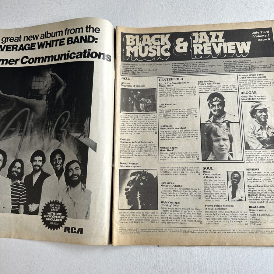 Features/interviews include: Brass Construction, Phillip Mitchell, Niney, John McLaughlin, Dewey Redman, Average White Band.