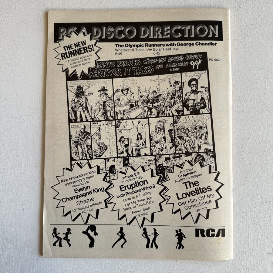 Full page adverts for O’Jays, Diana Ross, Heatwave, Brass Construction, David Ruffin, Eddie Kendricks, Salsoul, Wigan Casino, Cimarons etc.