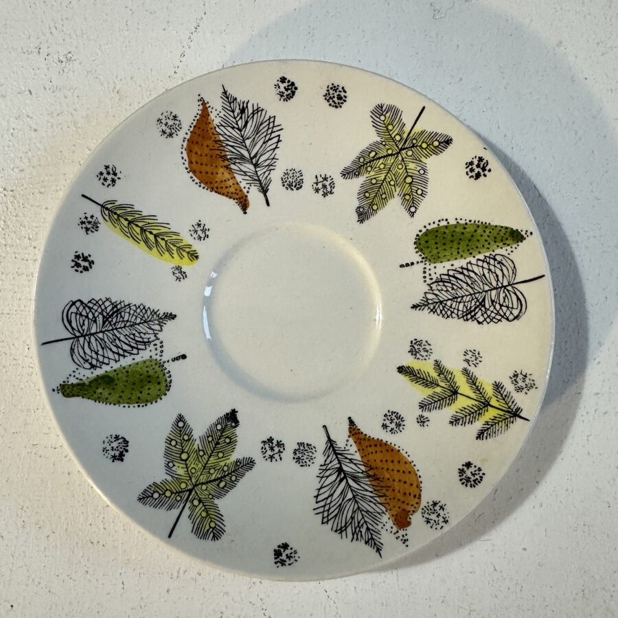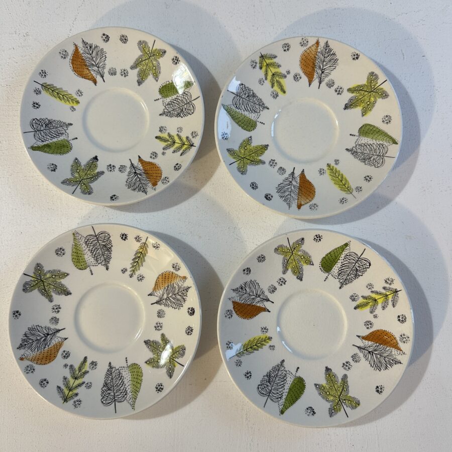 Here are four saucers designed by Kathie Winkle for Broadhurst in the Palma Nova pattern.