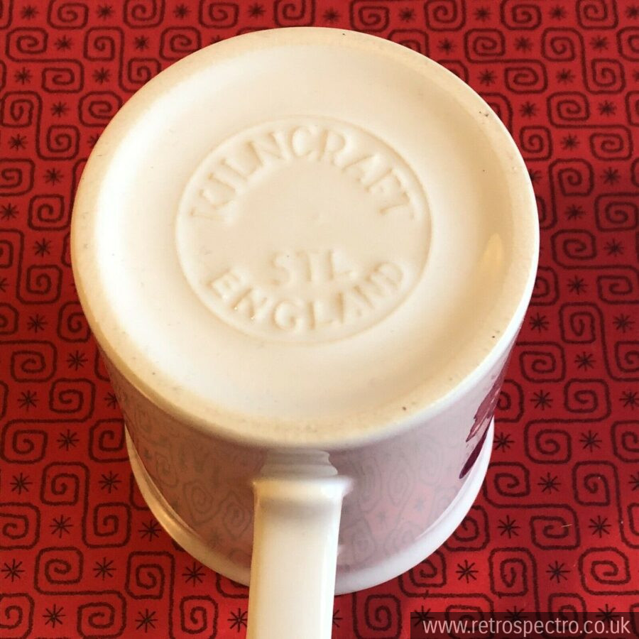 Here is a Cadbury’s Finest Chocolate branded Kilncraft mug. This is branded on the base – Kilncraft , STL & England. Probably dates from the 80’s.