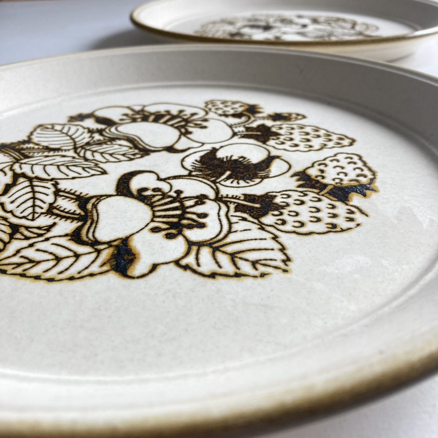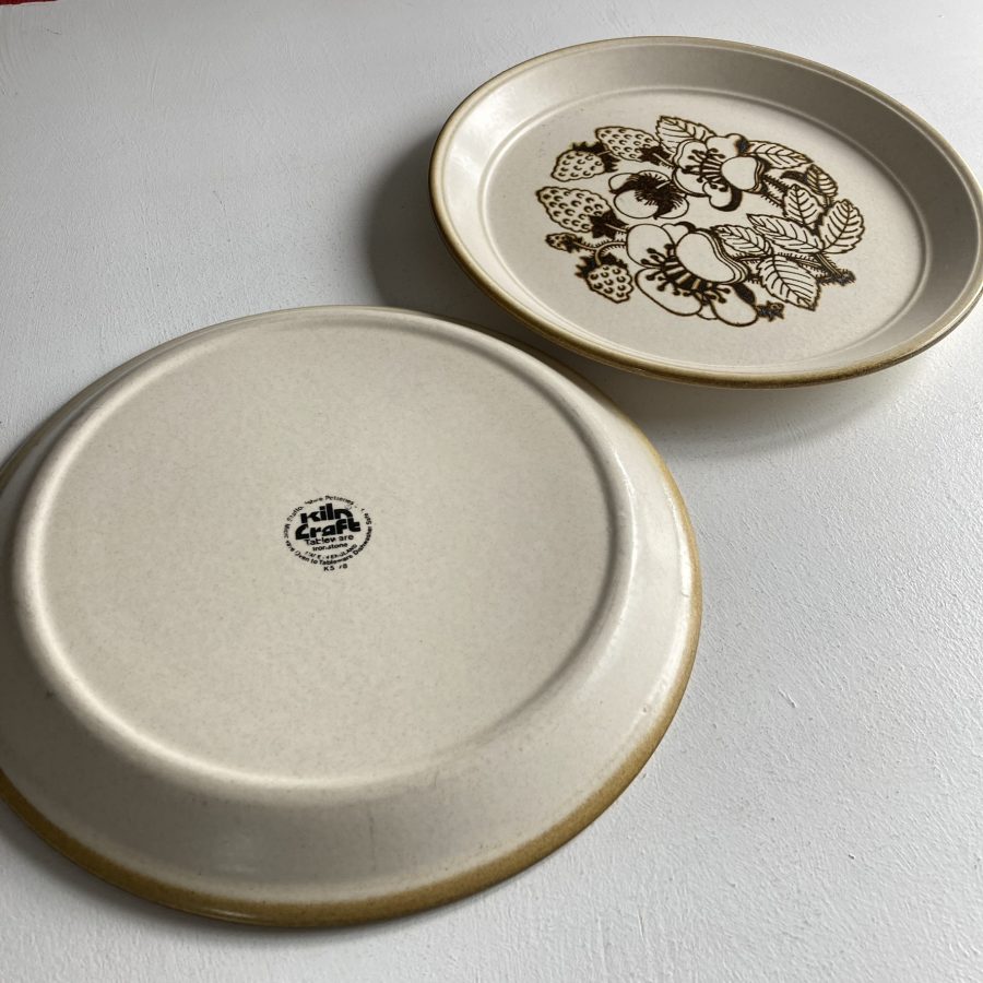 Here is a set of two dinner plates in the Kilncraft Strawberry Bramble pattern. The backstamp suggests these were made in 1978.