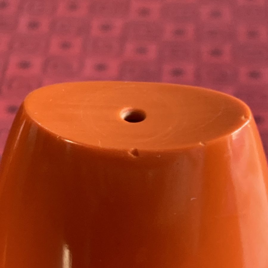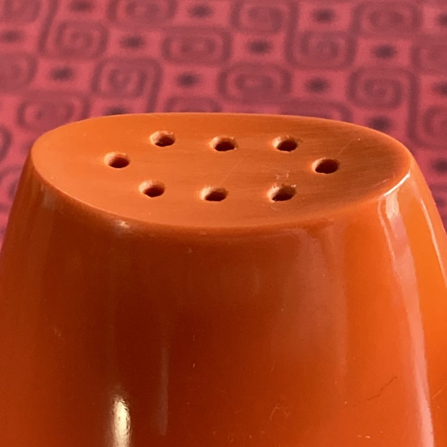 Here is a great looking vivid orange melamine salt and pepper set by one of the big melamine manufacturers Gaydon. Made of a hard melamine plastic with slightly softer black plastic base stoppers these will be perfect for every day use.