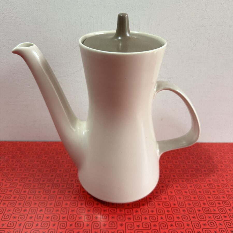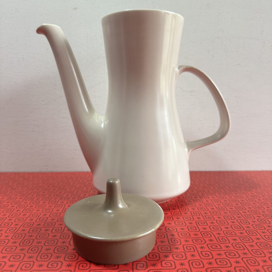 Here is a beautiful Poole Pottery Twintone Coffee Pot & Milk/Water Jug in Contour shape and the C54 Sepia and Mushroom colour.