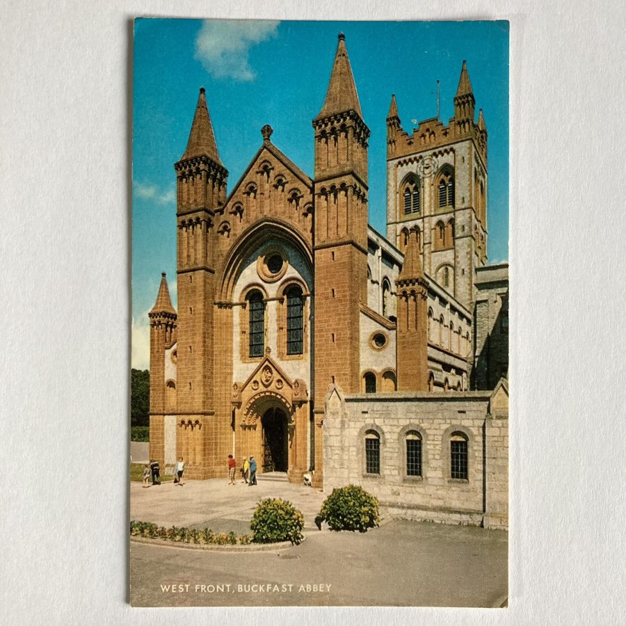 A vintage UK postcard of the West Front, Buckfast Abbey, Devon.