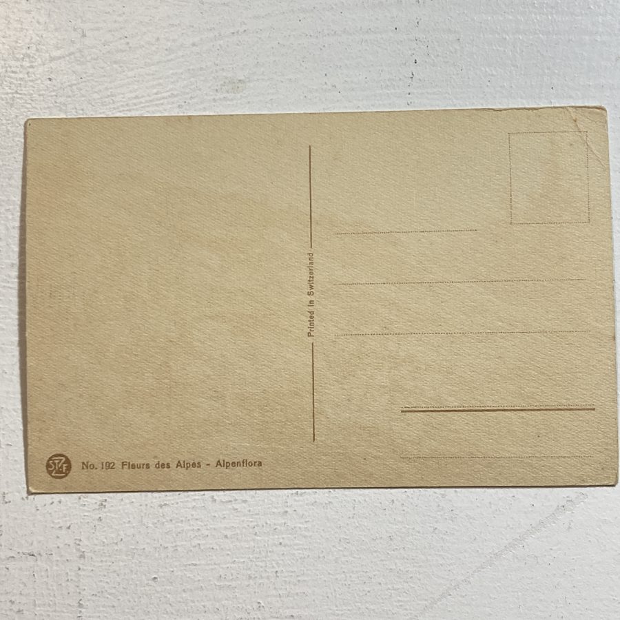 A vintage Swiss postcard featuring a print called Fleur Des Alpes.