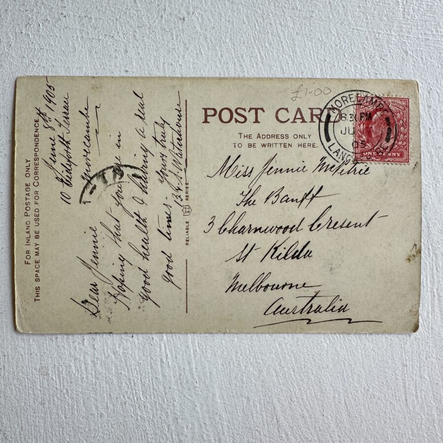 Addressed to: Miss Jennie ??, The Banff, 3 Charnwood Crescent, St Kilda, Melbourne, Australia.