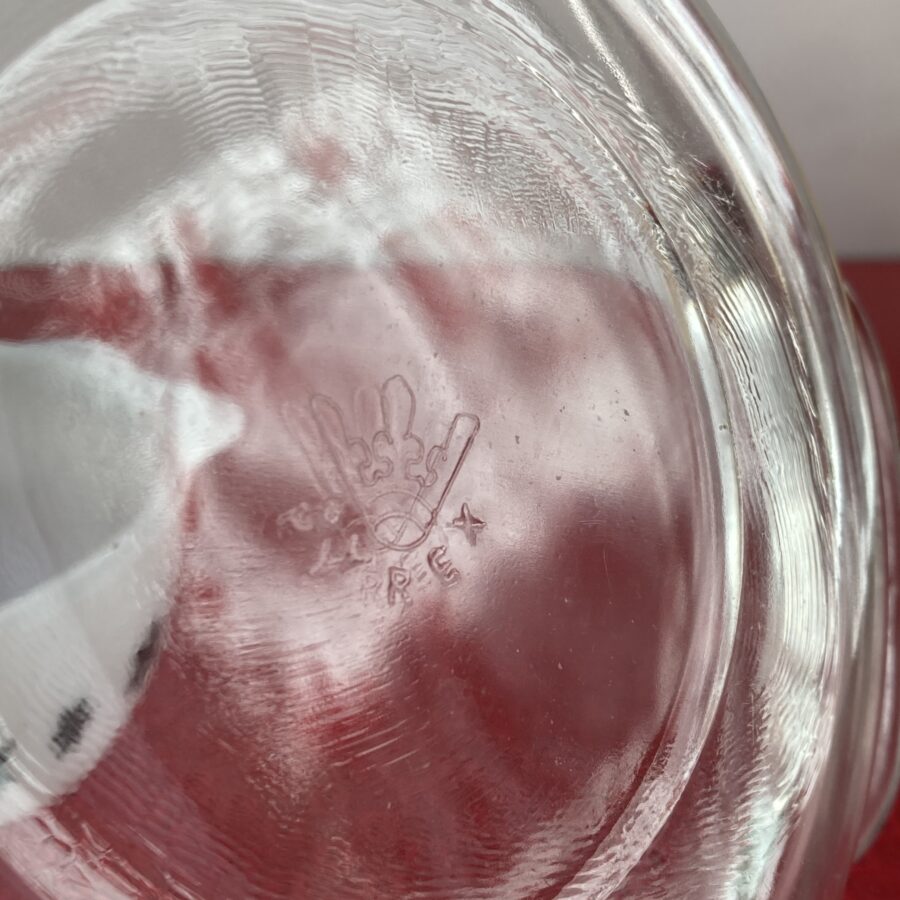 Here is a two pint easy-grip casserole dish by JAJ Pyrex in the Gaiety or Snowflake pattern complete with lid. Made in England between 1958-1967.