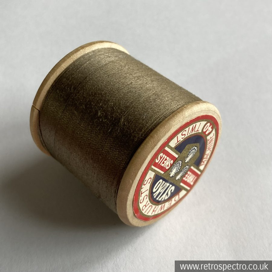Here is a standard size wooden Dewhurst’s Sylko cotton reel in Burnt Ash D.334.