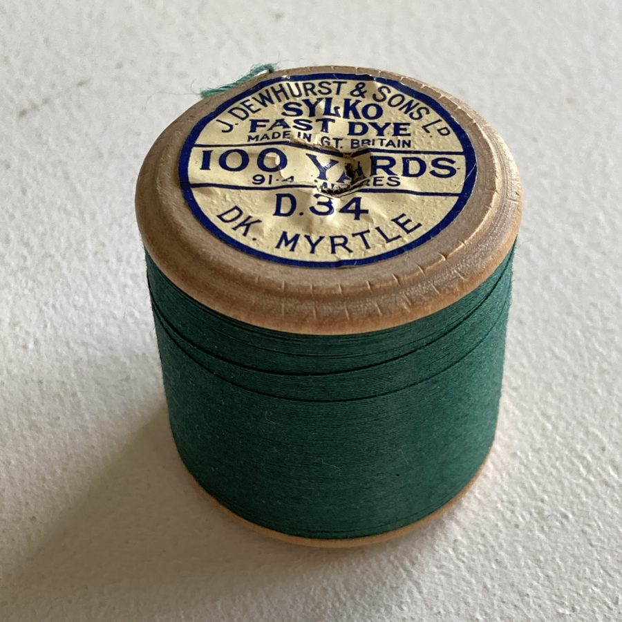 Here is a standard size wooden J.Dewhurst & Sons Sylko cotton reel in Dark Myrtle D.34.